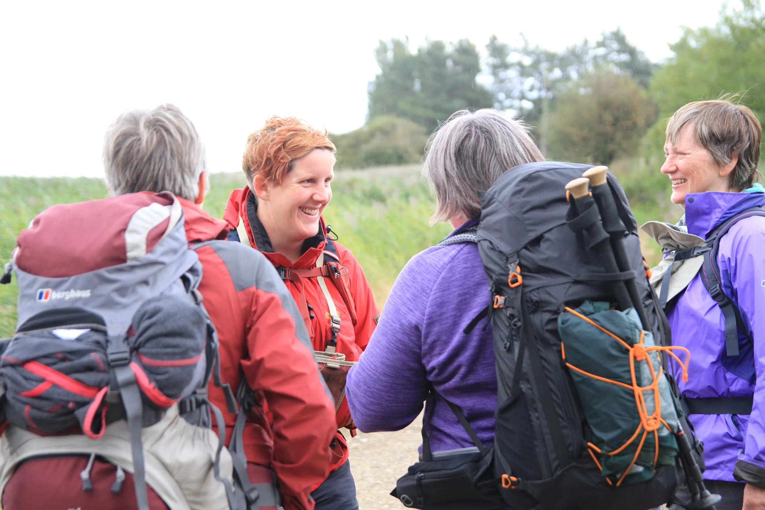 It means that on each day of a 4-day walk, there are roughly 10 scheduled ‘invitations’ or activities, each of which takes place at a specific point along the route. Some will be solo activities; suggestions just to walk on, silently reflecting on a certain topic. For example, having come to a crossroads, participants might be invited to reflect on a time in their lives when they faced a turning point, and to recall the decision they made and how it felt at the time. Other activities will be pair exercises. The group will walk on and participants will pair up and take turns to speak about the topic that has been raised. The listener will simply listen and give some feedback, before swapping over and taking their turn to share. The topic here might be inspired by, for example, a set of stepping stones; what are the steps you have taken that have got you to this point in your life? At other times, the activity will be a more extended group exercise. We might all stop and circle up, to discuss a particular topic such as, inspired by a boundary footpath, the question of how we set boundaries in our lives. At other moments, there might be a game, an activity, a challenge or simply space for meditation and rest. The trajectory of the whole day is carefully curated, and in between invitations, there is ‘down time’ simply to walk and chat, follow one’s own pace or continue the conversations that have been enjoyed.